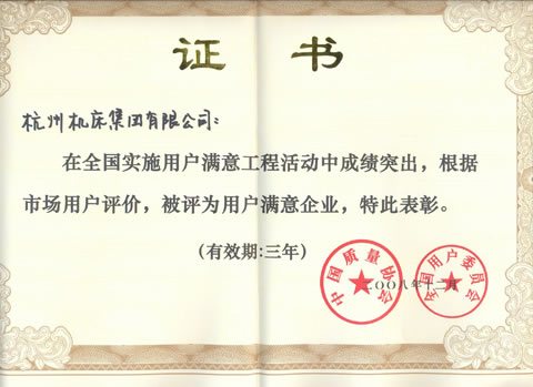 近召開的全國用戶工作會(huì)議暨實(shí)施用戶滿意工程推進(jìn)大會(huì)上,杭州機(jī)床集團(tuán)有限公司被評(píng)為2008年全國實(shí)施用戶滿意工程先進(jìn)單位,此次獲得這項(xiàng)榮譽(yù)的有80余家企業(yè),其中機(jī)床行業(yè)只有杭機(jī)集團(tuán)一家入選。