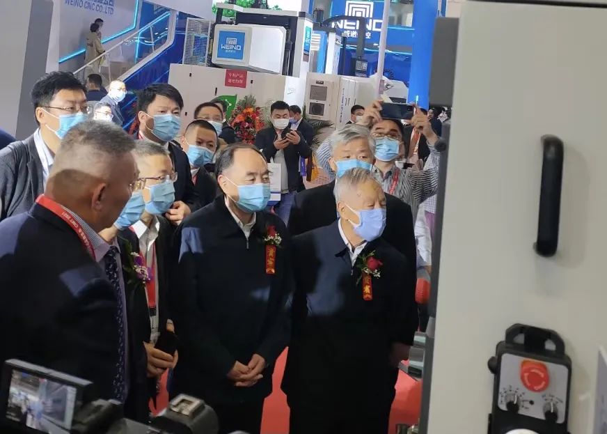 上午10時(shí),中國(guó)機(jī)床工具工業(yè)協(xié)會(huì)執(zhí)行副理事長(zhǎng)兼秘書(shū)長(zhǎng)王黎明、中國(guó)機(jī)床工具工業(yè)協(xié)會(huì)監(jiān)事長(zhǎng)王旭陪同原教育部部長(zhǎng)、中國(guó)工程院院長(zhǎng)周濟(jì),原機(jī)械工業(yè)部副部長(zhǎng)、國(guó)務(wù)院派駐國(guó)有重點(diǎn)大型企業(yè)監(jiān)事會(huì)原主席賈成炳等一行來(lái)到杭機(jī)展臺(tái)前,杭機(jī)股份董事長(zhǎng)孫益民、總經(jīng)理董凱夫向各位貴賓匯報(bào)了杭機(jī)在解決航發(fā)葉片加工等卡脖子問(wèn)題上取得的成果,目前這一成果已批量提供給航發(fā)用戶。周濟(jì)院長(zhǎng)長(zhǎng)期致力于機(jī)械設(shè)計(jì)、數(shù)控技術(shù)與智能制造的教學(xué)和研究工作,作為行業(yè)的專(zhuān)家,他耐心詢問(wèn)杭機(jī)的發(fā)展現(xiàn)狀和產(chǎn)品結(jié)構(gòu)。賈副部長(zhǎng)饒有興致地走近五軸數(shù)控強(qiáng)力成型磨床,近距離觀察機(jī)床內(nèi)部結(jié)構(gòu),孫益民董事長(zhǎng)和董凱夫總經(jīng)理向幾位領(lǐng)導(dǎo)介紹了兩臺(tái)展品的適用范圍和產(chǎn)品性能,以及杭機(jī)目前參與的國(guó)家04專(zhuān)項(xiàng)的進(jìn)展情況,幾位貴賓勉勵(lì)杭機(jī)要投入更多精力到產(chǎn)品研發(fā)上,承擔(dān)起為國(guó)內(nèi)航空航天、高精度數(shù)控機(jī)床功能部件及能源裝備中的關(guān)鍵零部件的高精、高效加工的企業(yè)責(zé)任。