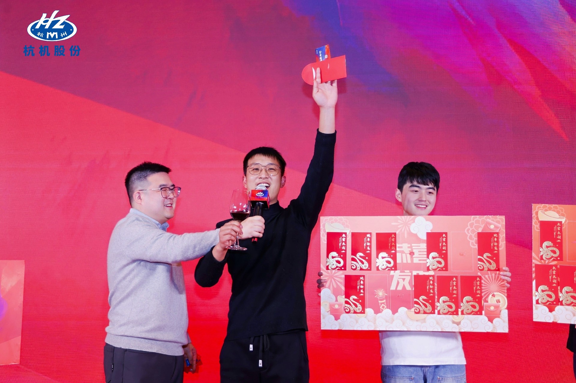 晚宴中杭機(jī)股份董事長(zhǎng)于立鵬先生致祝酒辭,并攜杭機(jī)股份全體董事會(huì)成員及經(jīng)營(yíng)班子共同上臺(tái)祝酒。于董首先對(duì)過(guò)去一年關(guān)心支持杭機(jī)發(fā)展的各級(jí)政府與全體杭機(jī)家人們表示感謝,并強(qiáng)調(diào)杭機(jī)一直以來(lái)是一個(gè)有文化認(rèn)同,有傳承精神的企業(yè)。展望新的一年,我們將會(huì)繼續(xù)發(fā)揚(yáng)杭機(jī)精神,緊緊抓住新的發(fā)展機(jī)遇,不斷提升管理水平,加大技術(shù)創(chuàng)新投入,拓展市場(chǎng)渠道,為社會(huì)貢獻(xiàn)更多精品、為股東創(chuàng)造更多價(jià)值,為員工提供更好的發(fā)展平臺(tái)和福利待遇,團(tuán)結(jié)一心,攜手共進(jìn),共同開(kāi)創(chuàng)杭機(jī)更加美好的明天!牢筑發(fā)展基石,踏上新的征程,向新而行,向上而行!