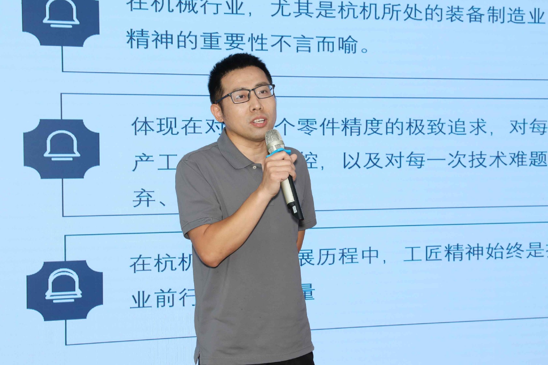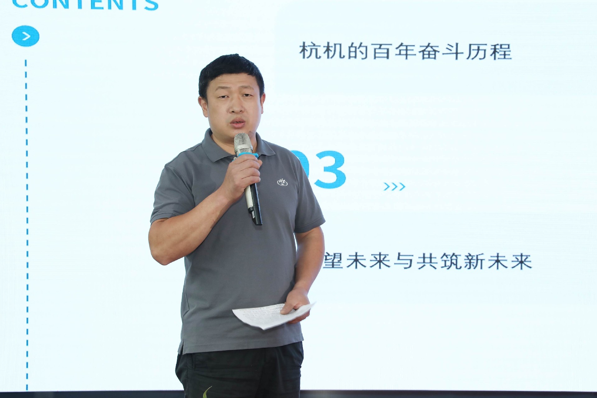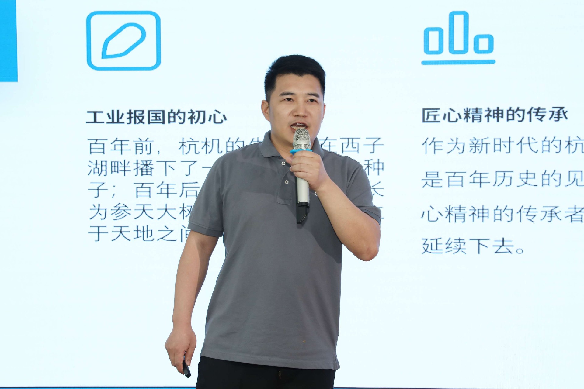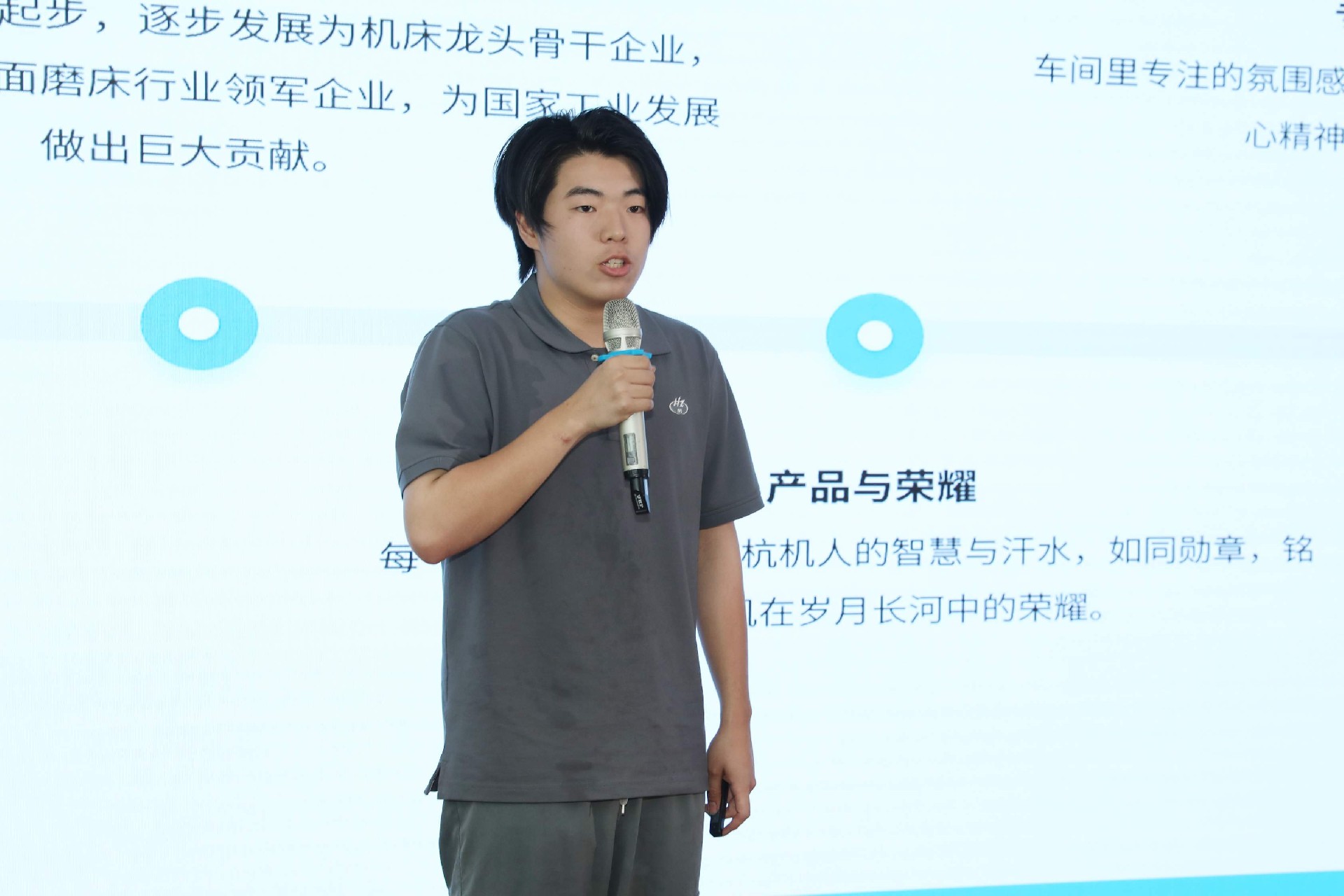 決賽現(xiàn)場(chǎng),16名來自不同崗位的參賽選手依次登臺(tái)。他們中既有扎根車間三十載的老技工,也有青年研發(fā)工程師,更有新入職就感受到滿滿杭機(jī)力量的新員工。演講內(nèi)容緊扣“匠心傳承”“智造突圍”“黨員先鋒”等關(guān)鍵詞,配合多媒體視聽呈現(xiàn),引發(fā)陣陣掌聲。
